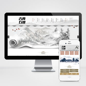 【S402】艺术石雕雕刻类企业网站模板 (PC+手机版)古典水墨风格网站源码下载