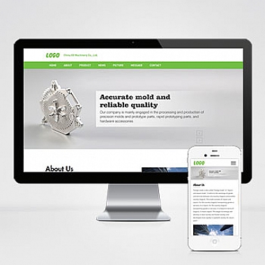 绿色五金零件英文自适应手机端外贸网站模板 精密模具零件加工类网站源码