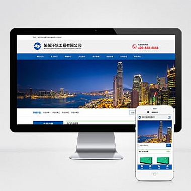 蓝色环境工程设备自适应手机端网站模板 环保设备网站源码
